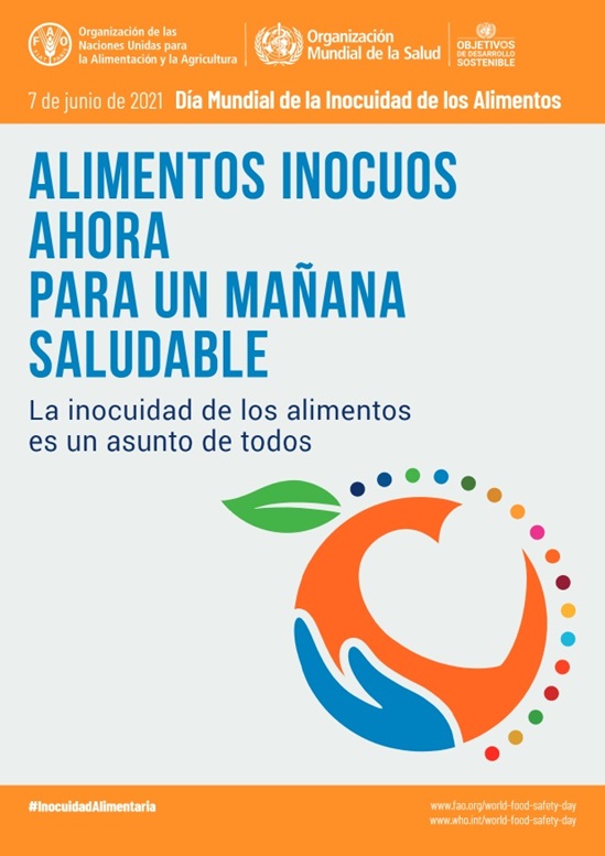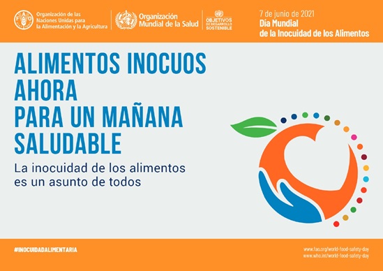El objetivo del Día Mundial de la Inocuidad de los Alimentos que se celebra el 7 de junio de 2021 es llamar la atención sobre los riesgos asociados con los alimentos e incitar a actuar para prevenirlos, detectarlos y gestionarlos, contribuyendo así a su inocuidad y a la salud de las personas, a la prosperidad económica, la agricultura y la ganadería, el acceso a los mercados, el turismo y el desarrollo sostenible.